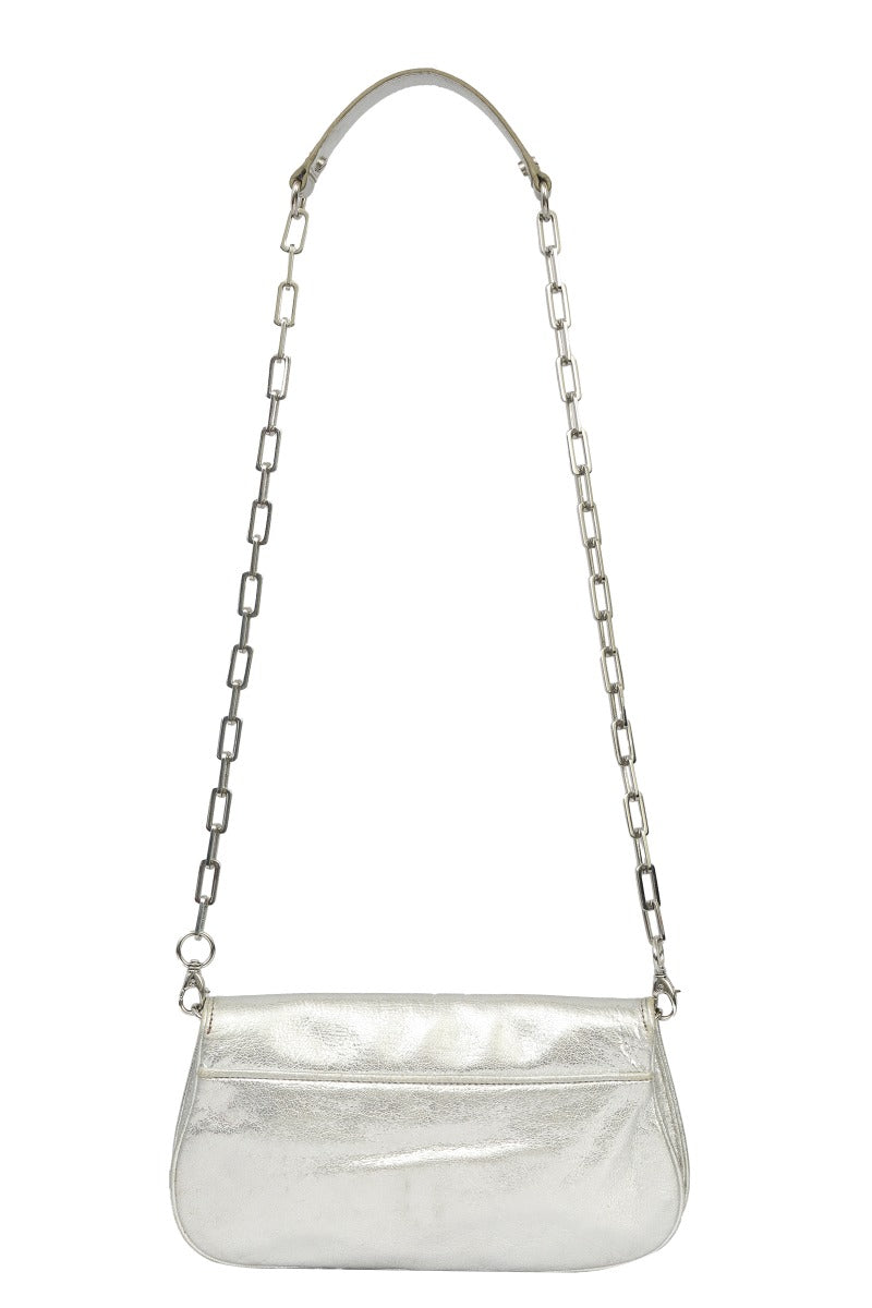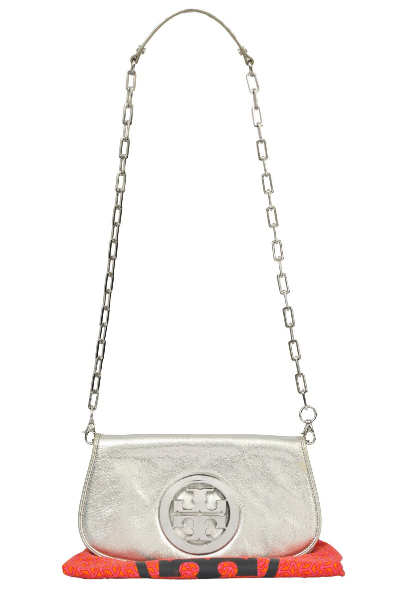 TORY BURCH METALLIC SILVER LEATHER REVA SLING BAG comes in this Stunning Silver color .It falls under our Pristine Condition Category. No visible wear and tear or fading can be seen.