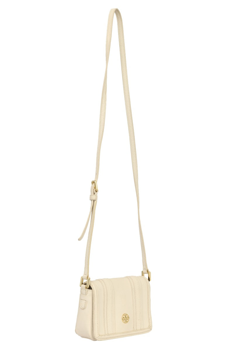 TORY BURCH OFF WHITE LEATHER FLAP CROSSBODY BAG comes in this Stunning Off White color .It falls under our Pristine Condition Category. No visible wear and tear or fading can be seen.
