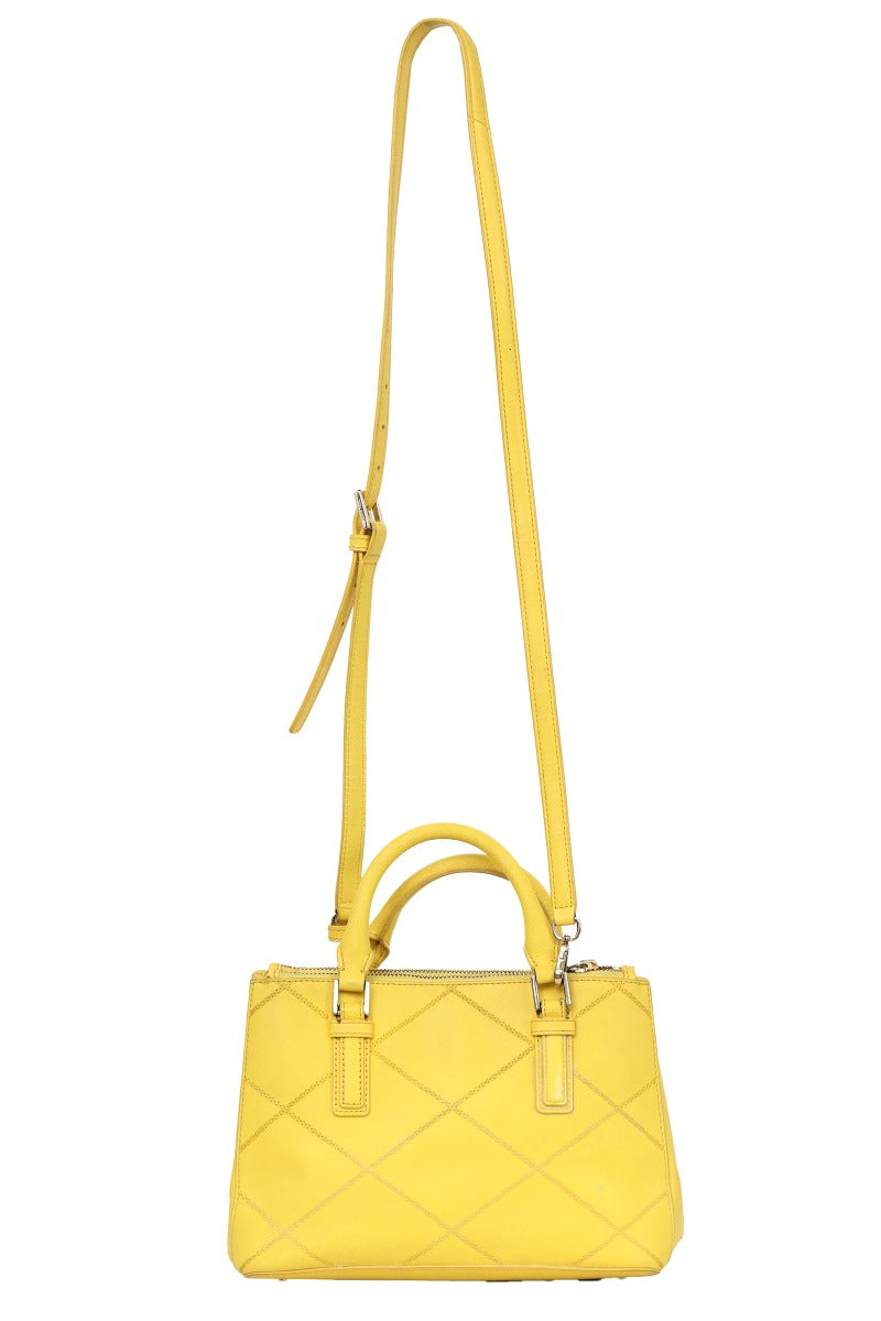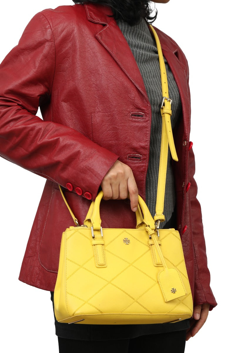 Tory Burch Robinson Double Zip Yellow Sunshine Top Handle Bag comes in this Stunning Yellow color .It falls under our Pristine Condition Category. No visible wear and tear or fading can be