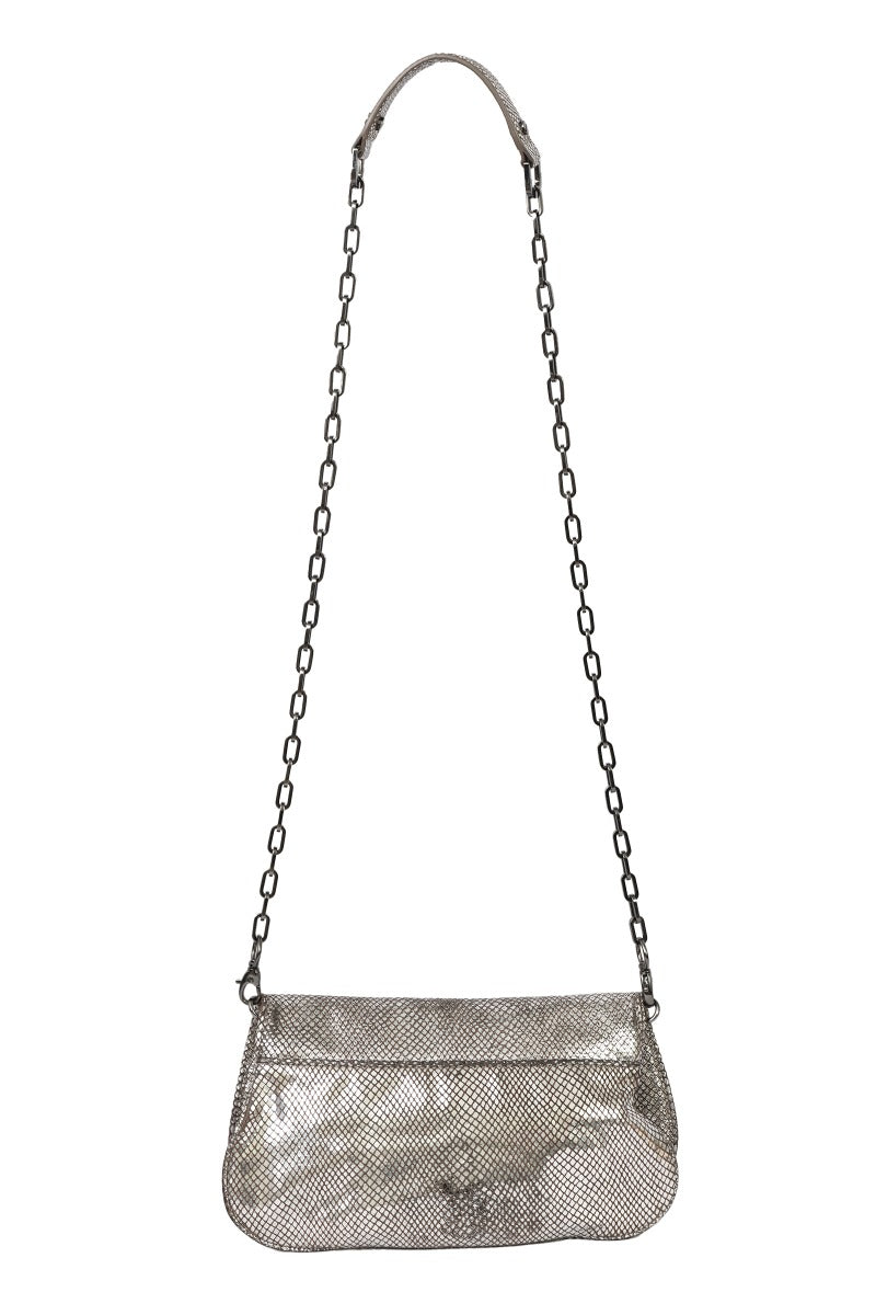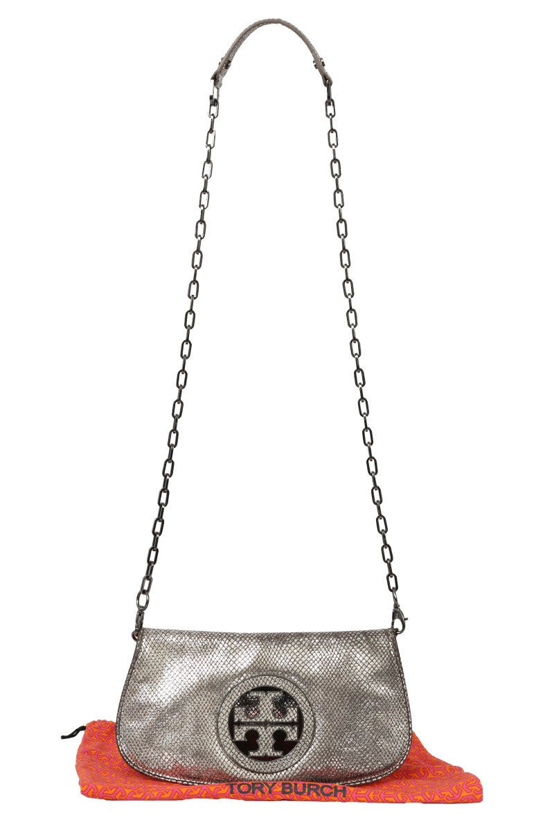 Tory Burch Silver Exotic Leather Logo Shoulder Bag
