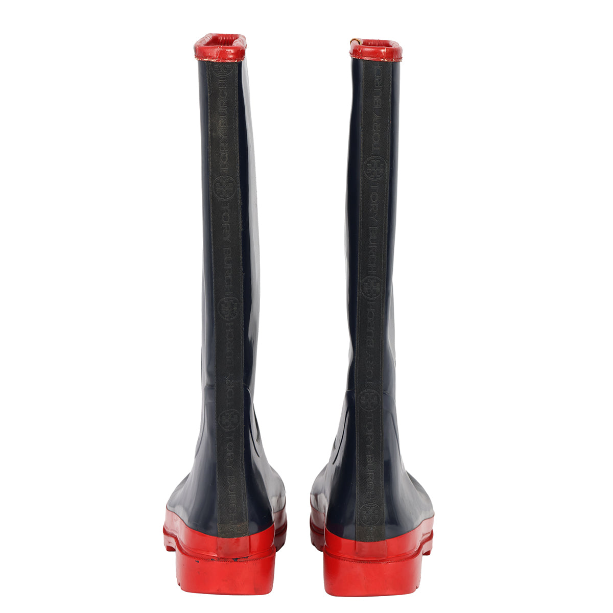 Tory Burch Size: 8 / EU 38 Rubber Rain Boots comes in this stunning dark blue color.