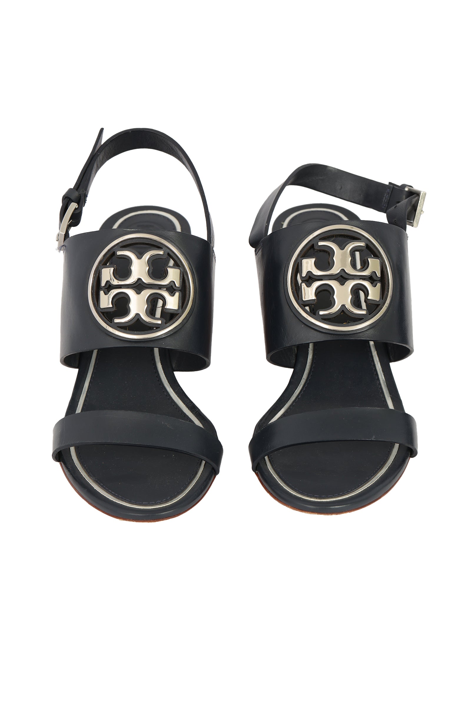 TORY BURCH SIZE 6.5/ EU 39 METAL MILLER WEDGES comes in this stunning Dark Blue color. It falls under our Pristine Condition Category. No visible wear and tear or fading can be seen