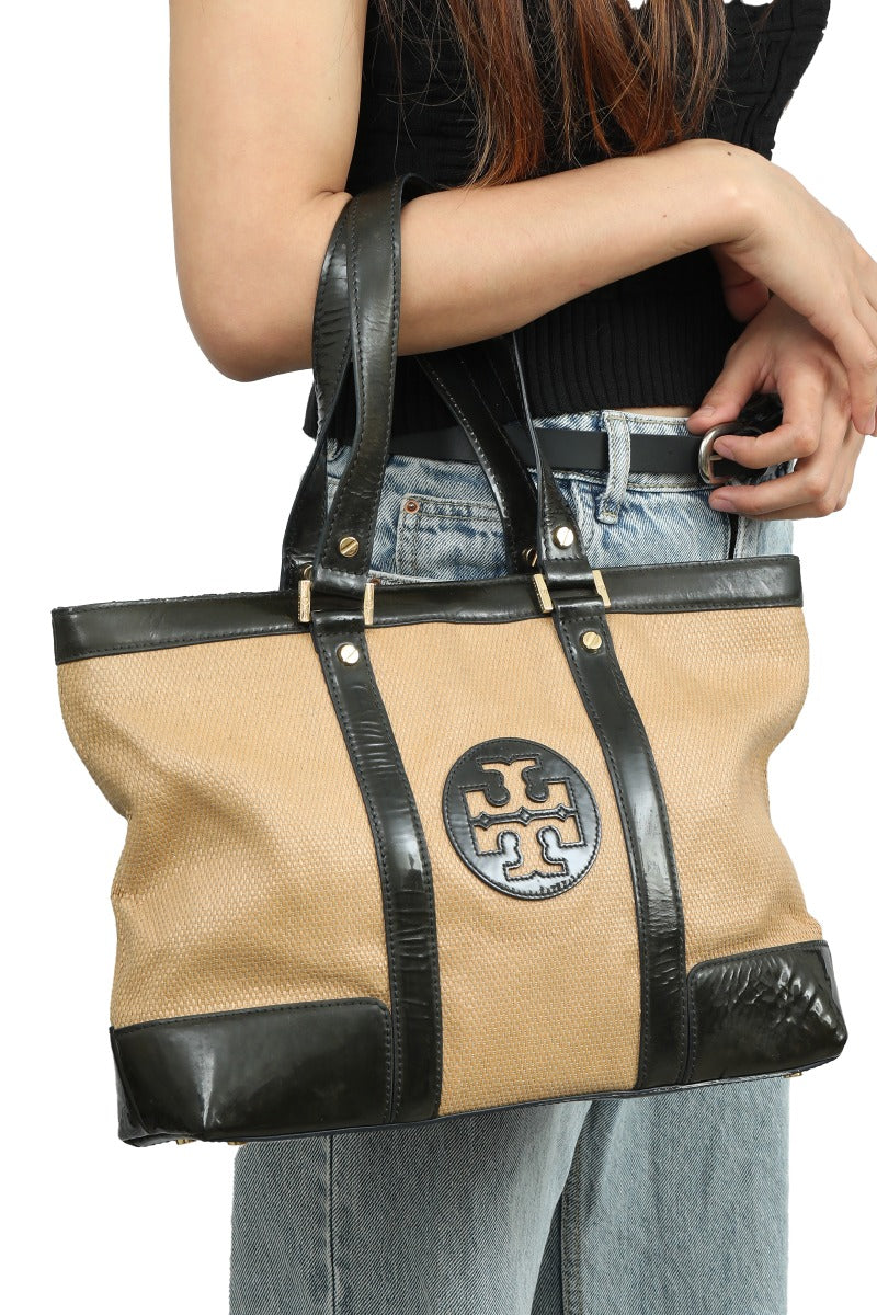 TORY BURCH STRAW LOGO TOTE BAGS comes in this Stunning Beige color .It falls under our Pristine Condition Category. No visible wear and tear or fading can be seen.
