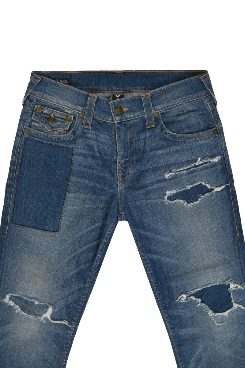 True Religion Ripped Jeans comes in this Stunning Dark Blue color. It falls under our Pristine Condition Category. No visible wear and tear or fading can be seen.