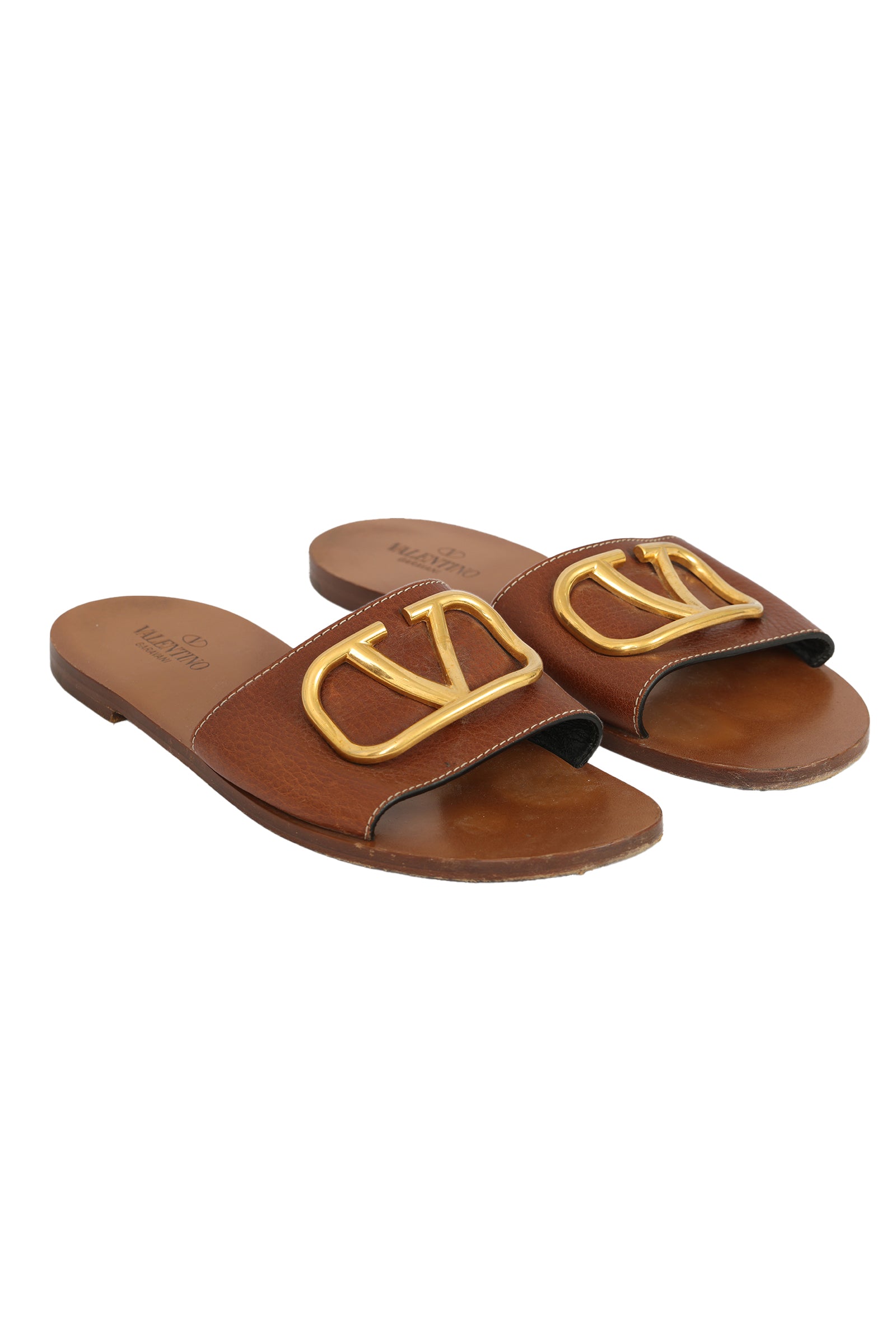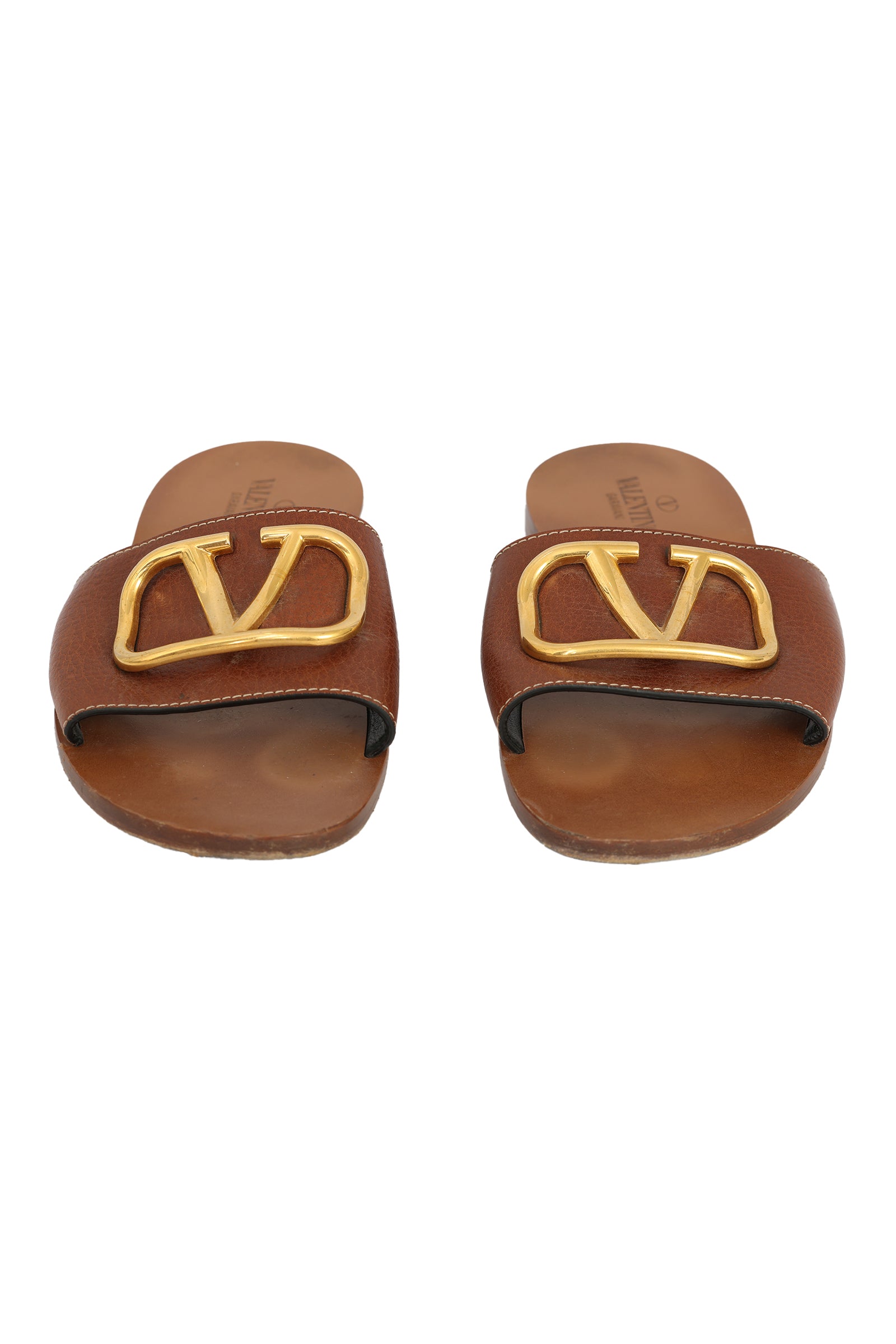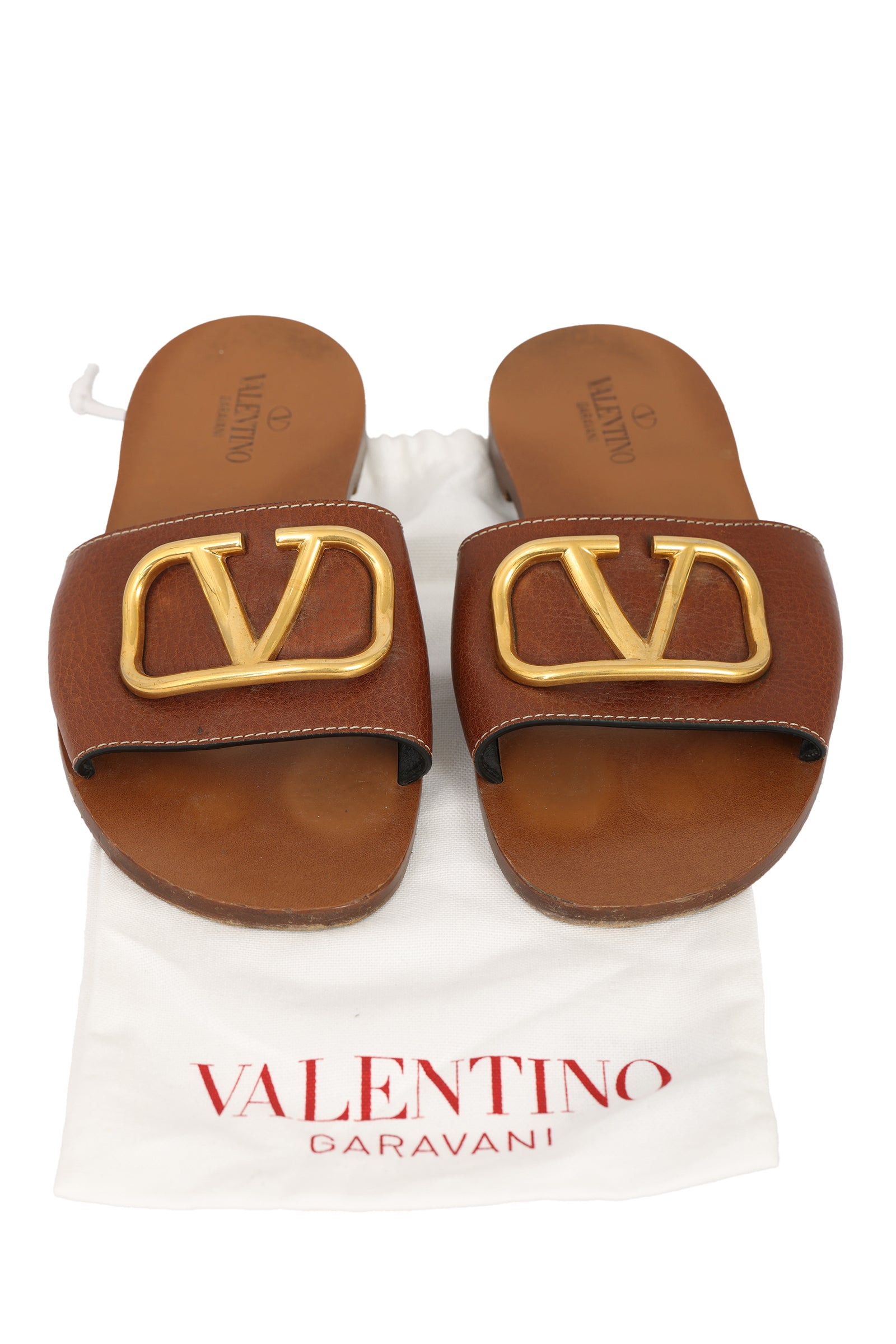 The Valentino Garavani EU 39 V Logo Signature Slides come in a stunning brown color.