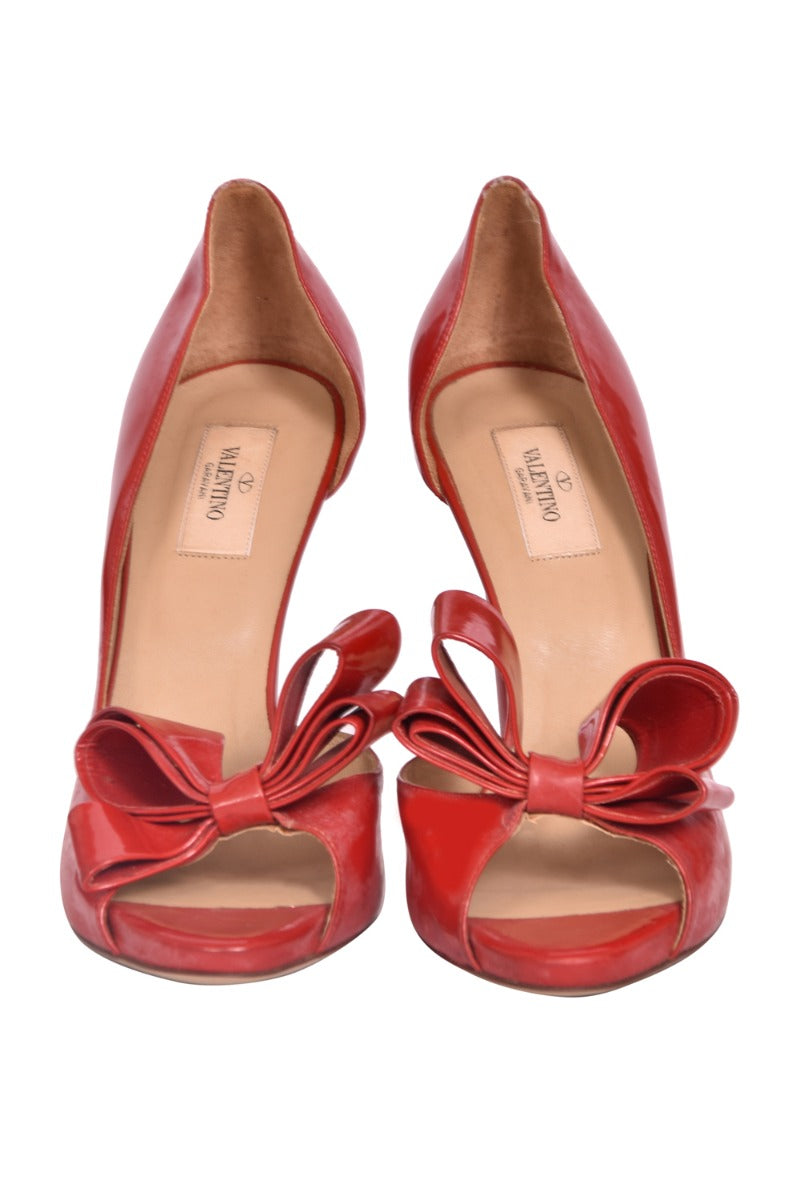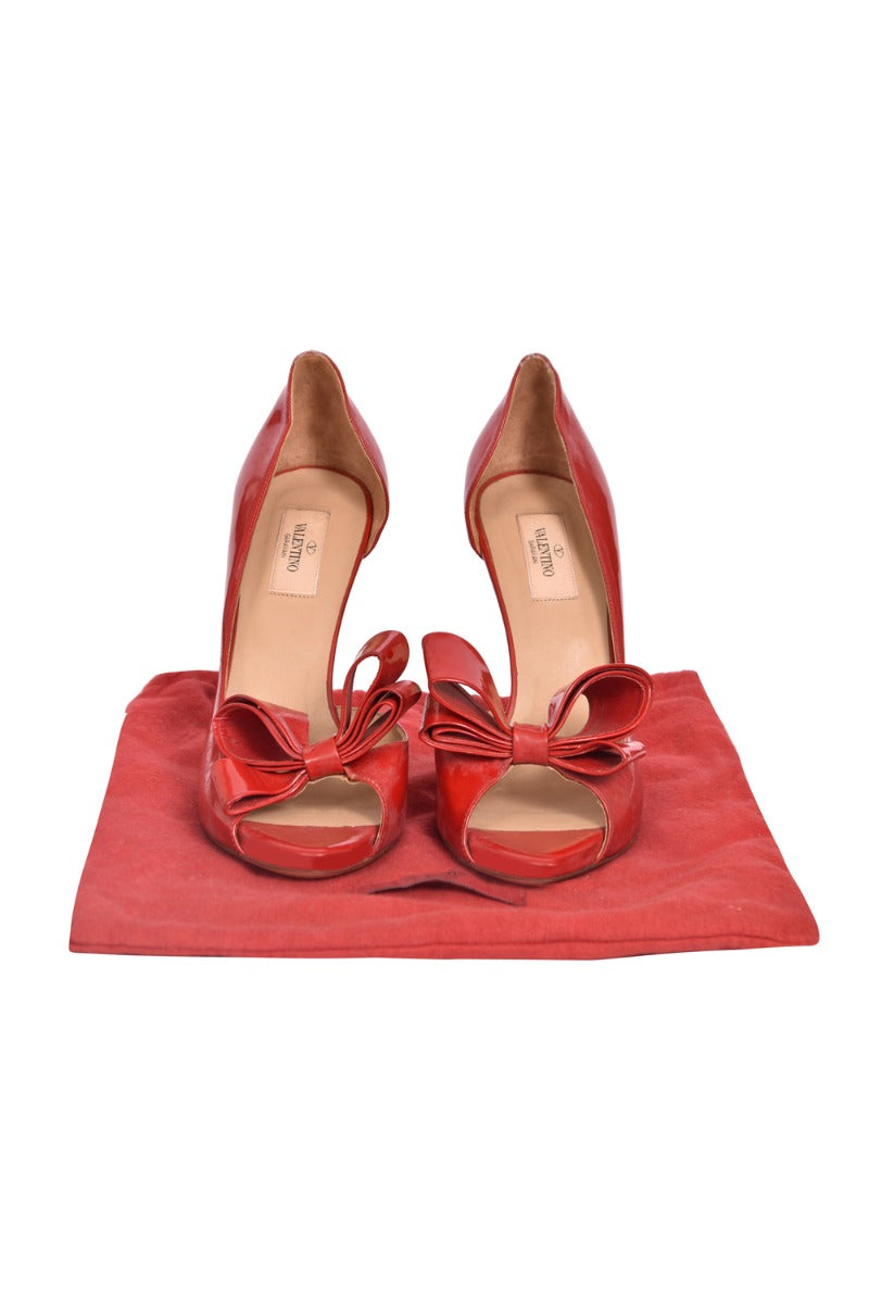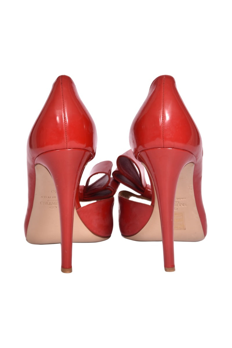 Valentino Red Bow Womens Heels comes in this stunning Red color. It falls under our Pristine Condition Category. No visible wear and tear or fading can be seen.
