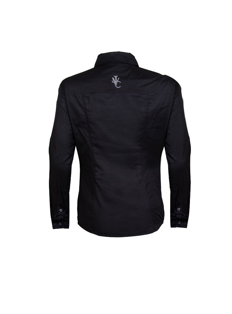 Smarten up their formal wardrobe with this Black Shirt From Versace Jeans Couture. The cotton design is adorned with a collared neckline complete with logo buttons and a beautiful Swarovski Versace iconic logo to the back. Team it up with dark blue denim.