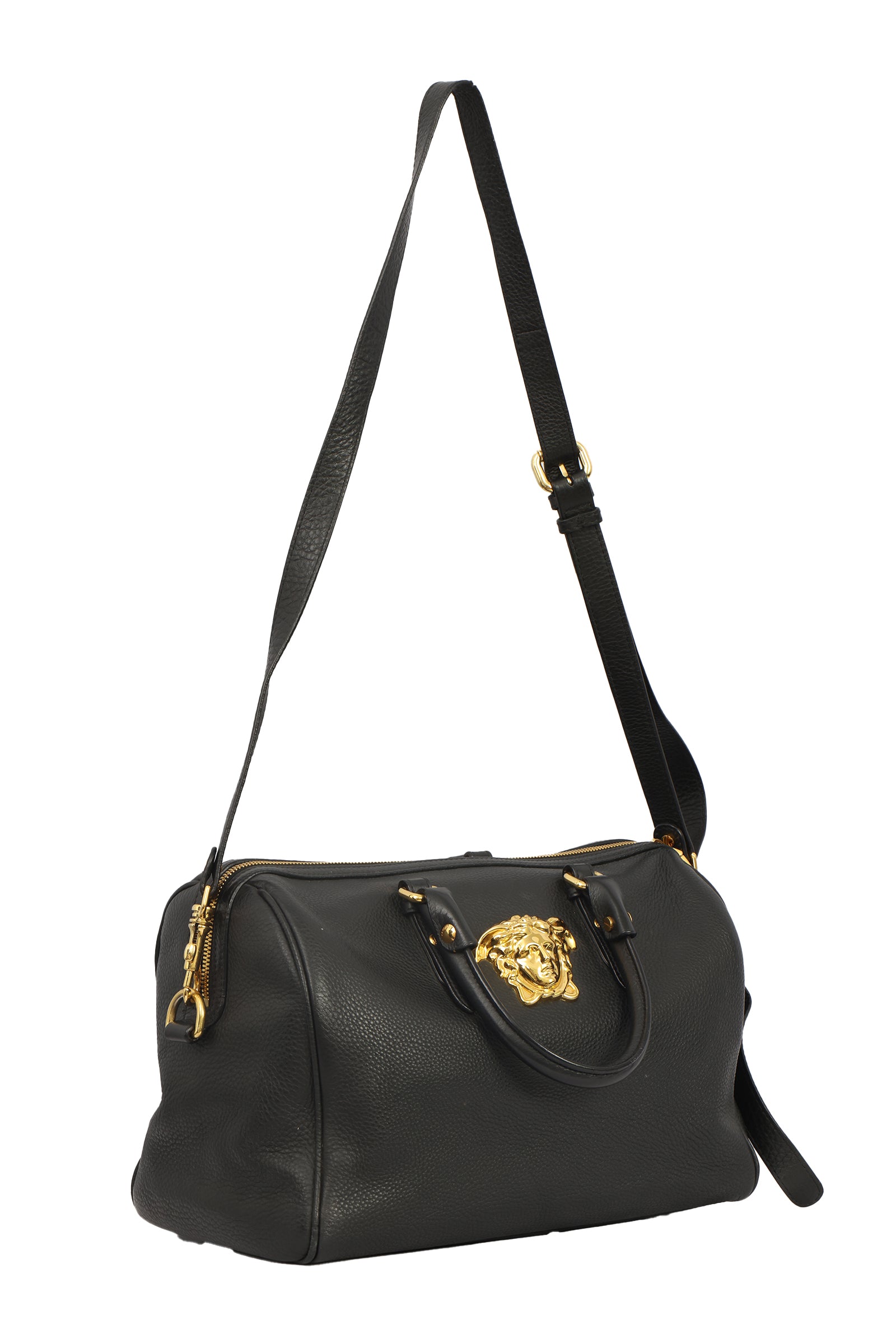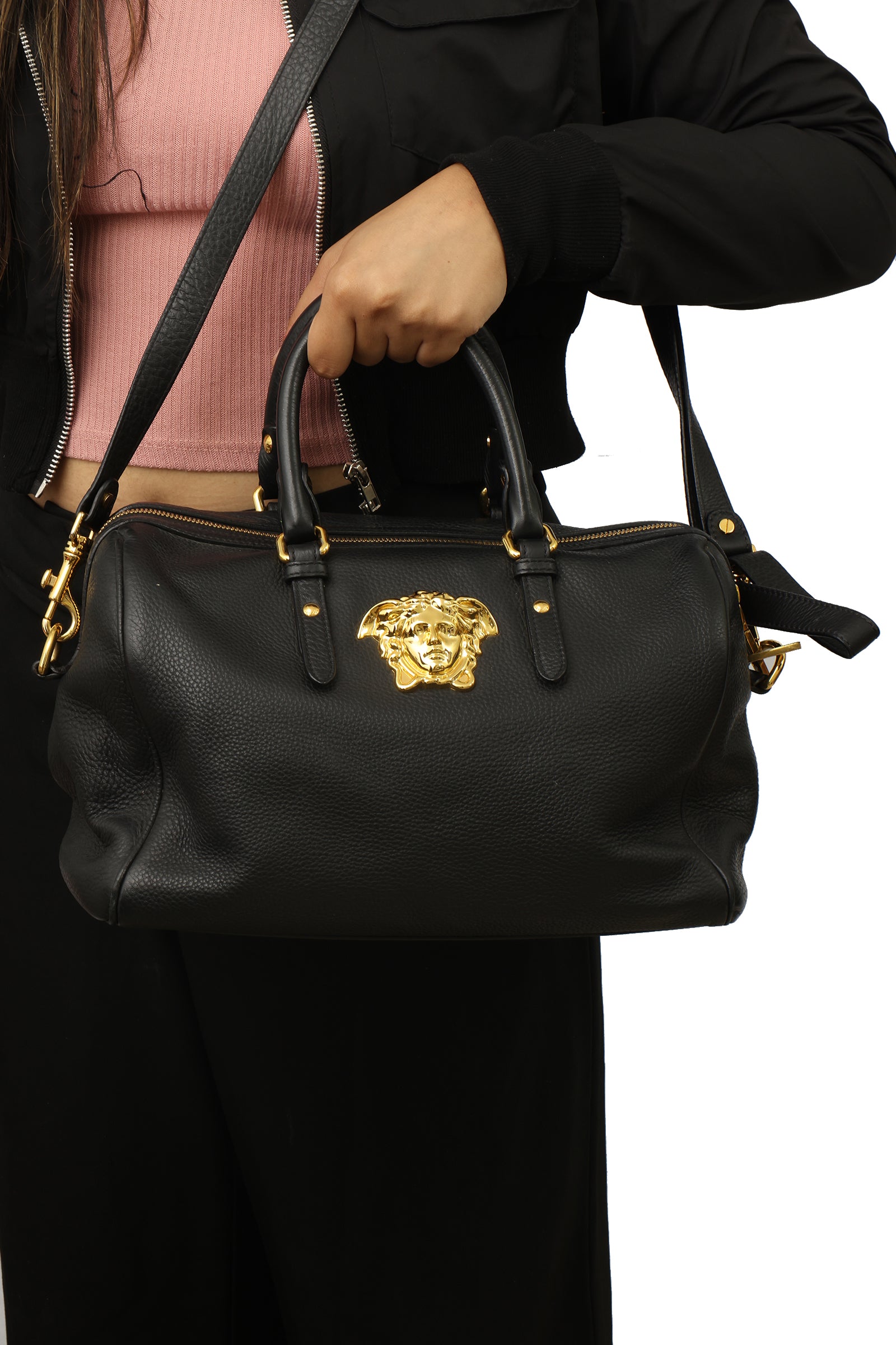 Versace La Medusa Leather Satchel Bag comes in this stunning Black colour.