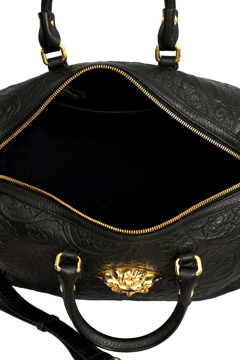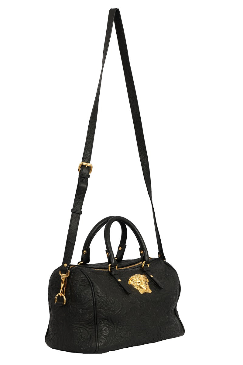 VERSACE MEDUSA EMBOSSED LEATHER BOWLING BAG comes in this Stunning Black color .It falls under our Pristine Condition Category