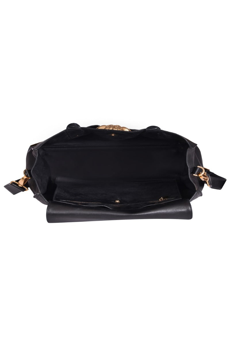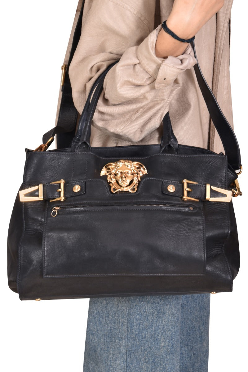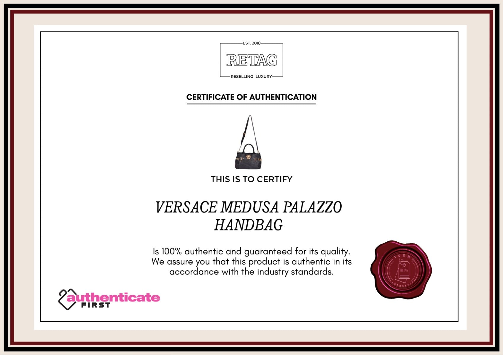 Versace Medusa Palazzo Handbag comes in this Stunning Black color .It falls under our Pristine Condition Category. No visible wear and tear or fading can be seen.