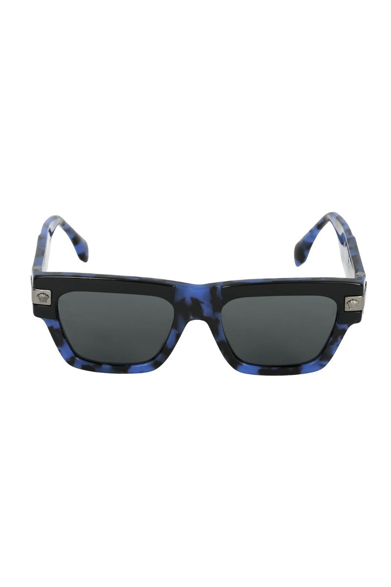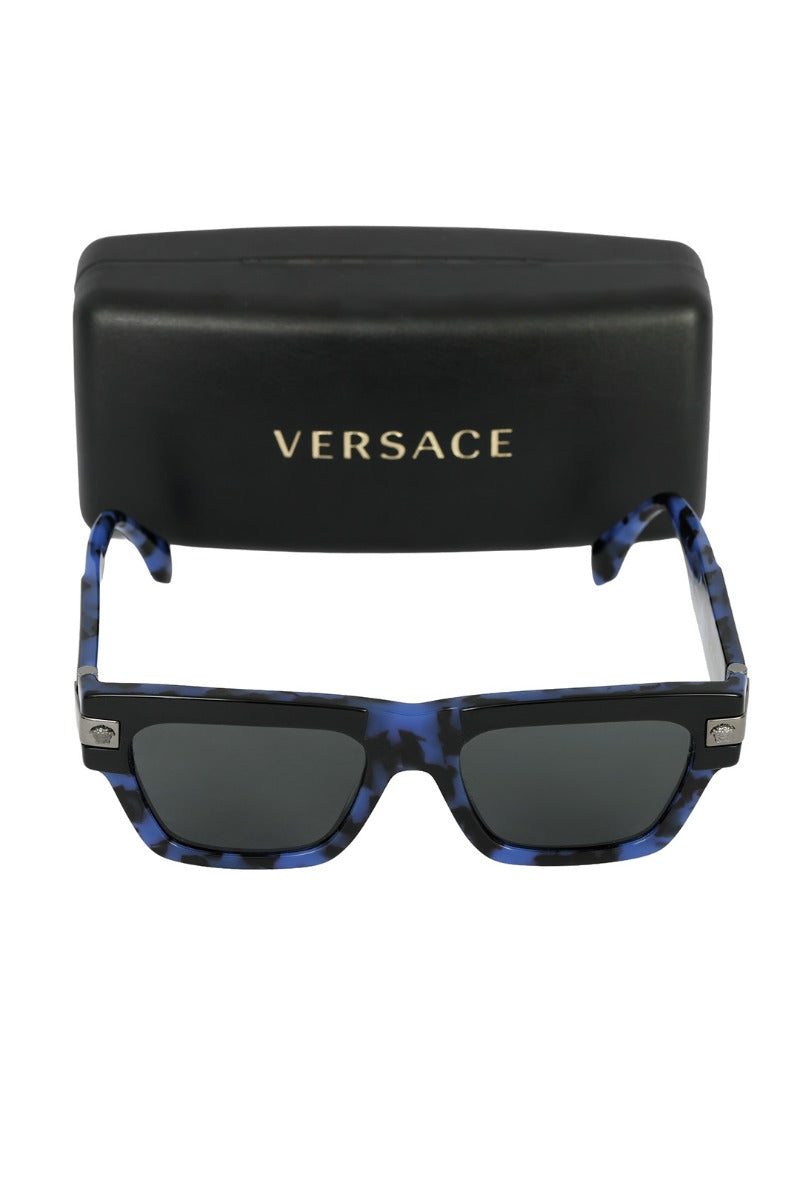 VERSACE MEN UV PROTECTED GREY LENS RECTANGLE SUNGLASSES comes in this Stunning Black/blue color. It falls under our Like New condition category. Few Scratches will be visible.