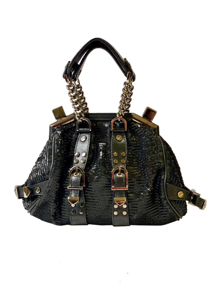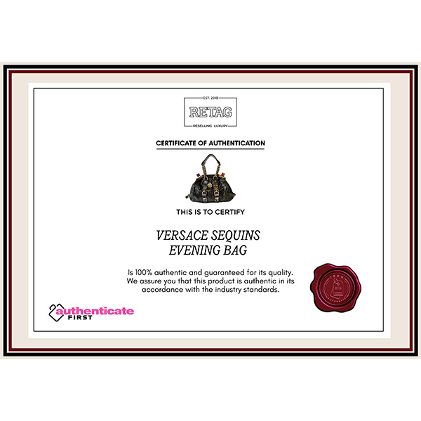 VERSACE SEQUINS EVENING BAG comesin this stunning Black color. It falls under our Gently Used Condition category. No visible wear & tear can be seen.