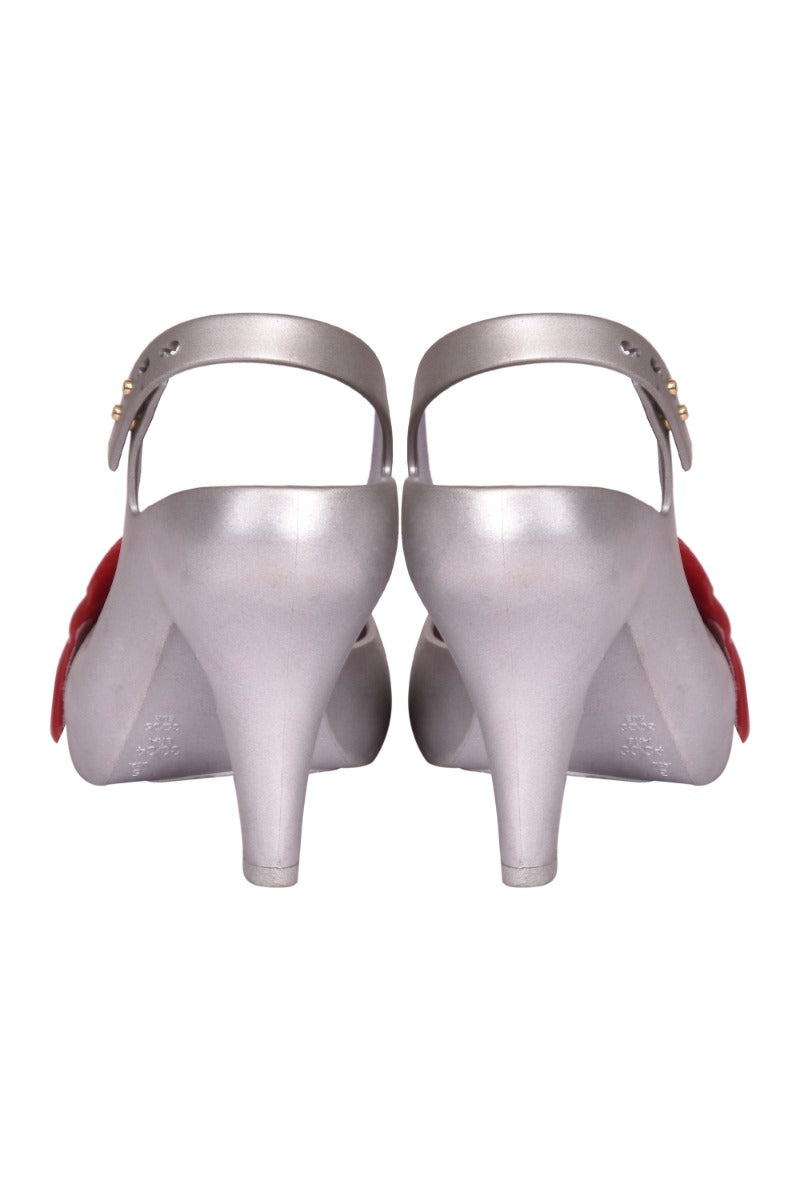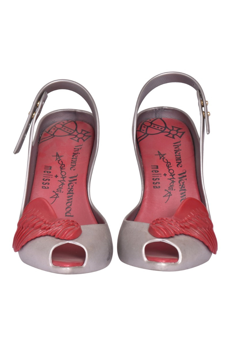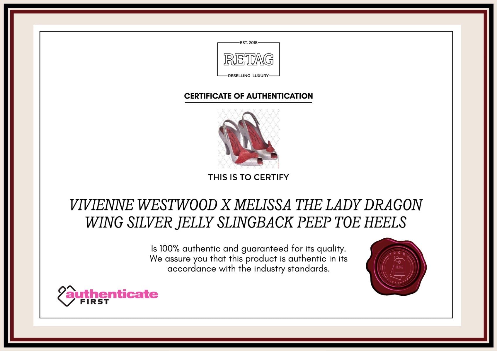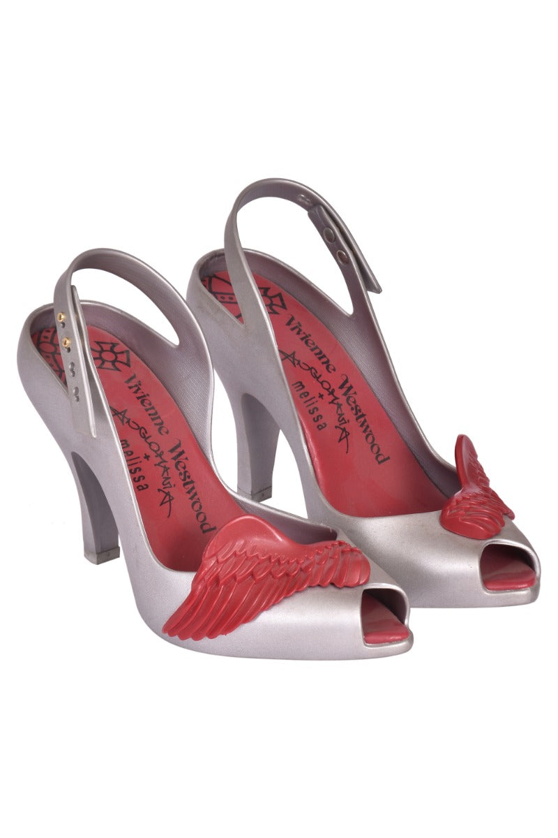 Vivienne Westwood X Melissa The Lady Dragon Wing Silver Jelly Slingback Peep Toe Heelscomes in this stunning Silver color. It falls under our Pristine Condition Category. No visible wear and tear or fading can be seen