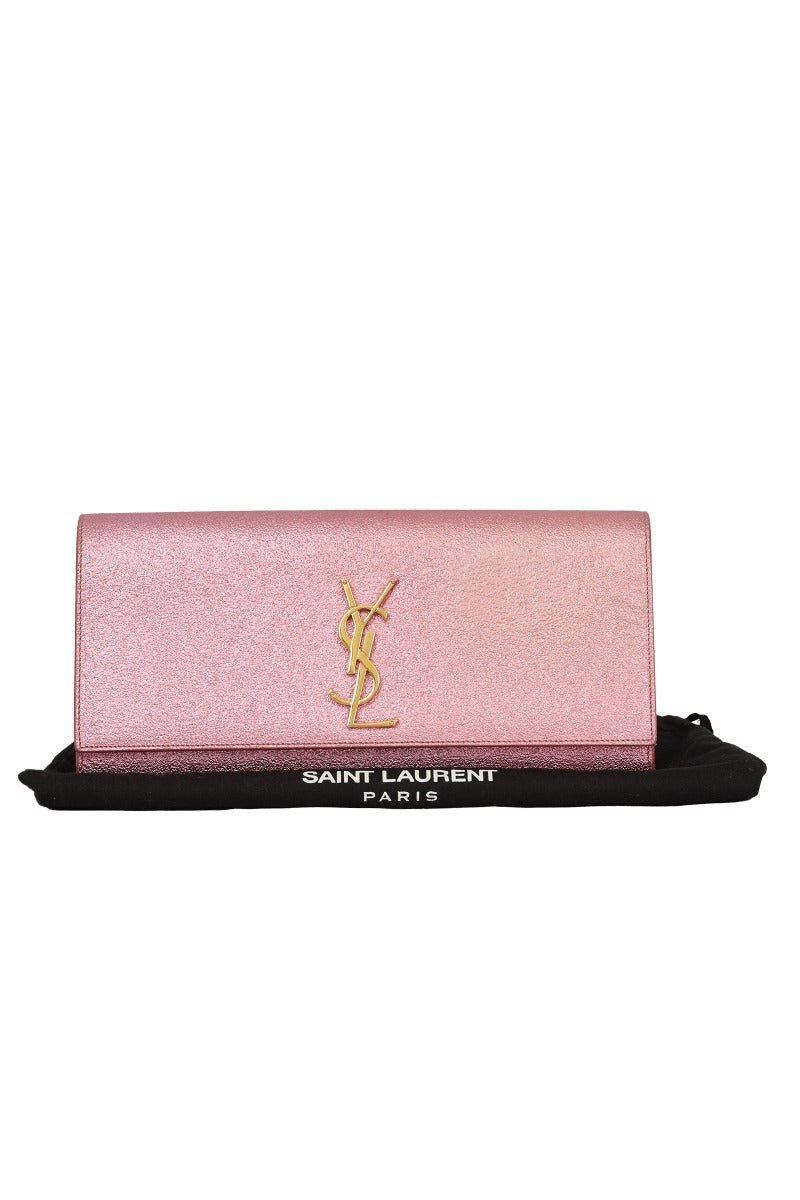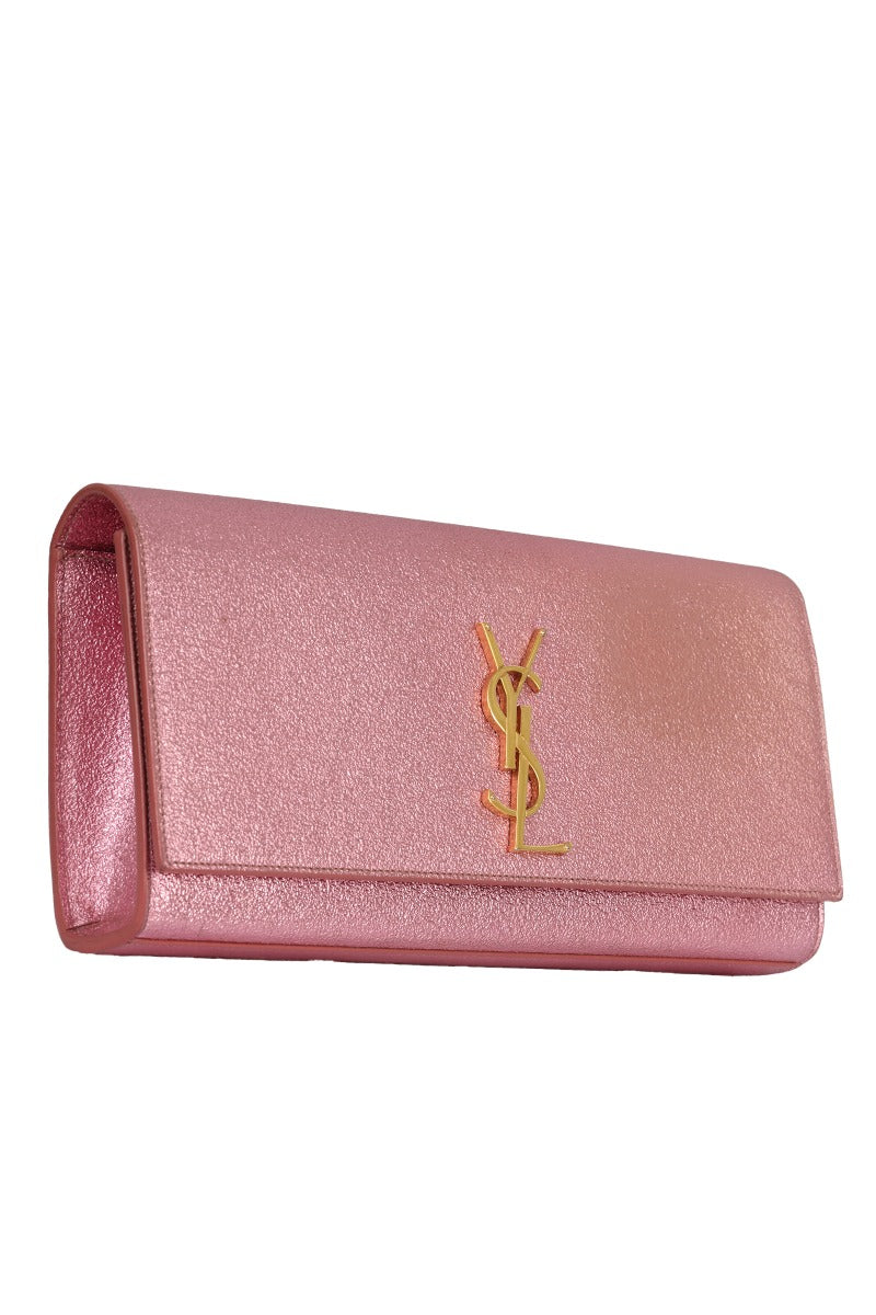 Yves Saint Laurent Metallic Pink Leather Kate Flap Clutch