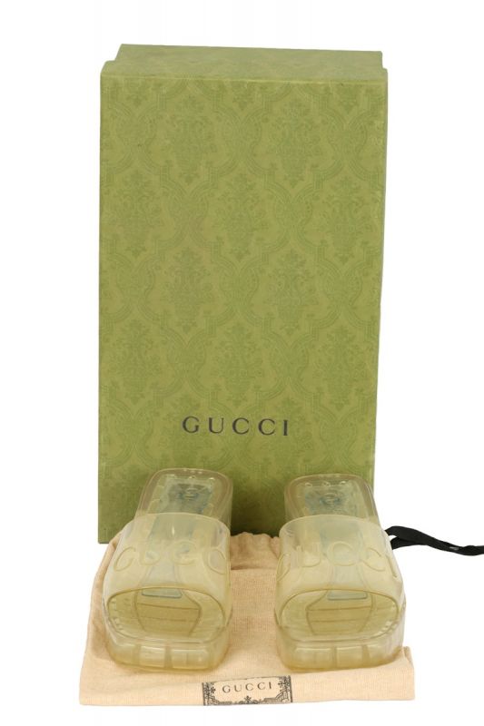 GUCCI SIZE – EU39 RUBBER TRANSPAREN SLIDE SANDALS comes in this stunning Transparent color. It falls under our Pristine Condition Category.