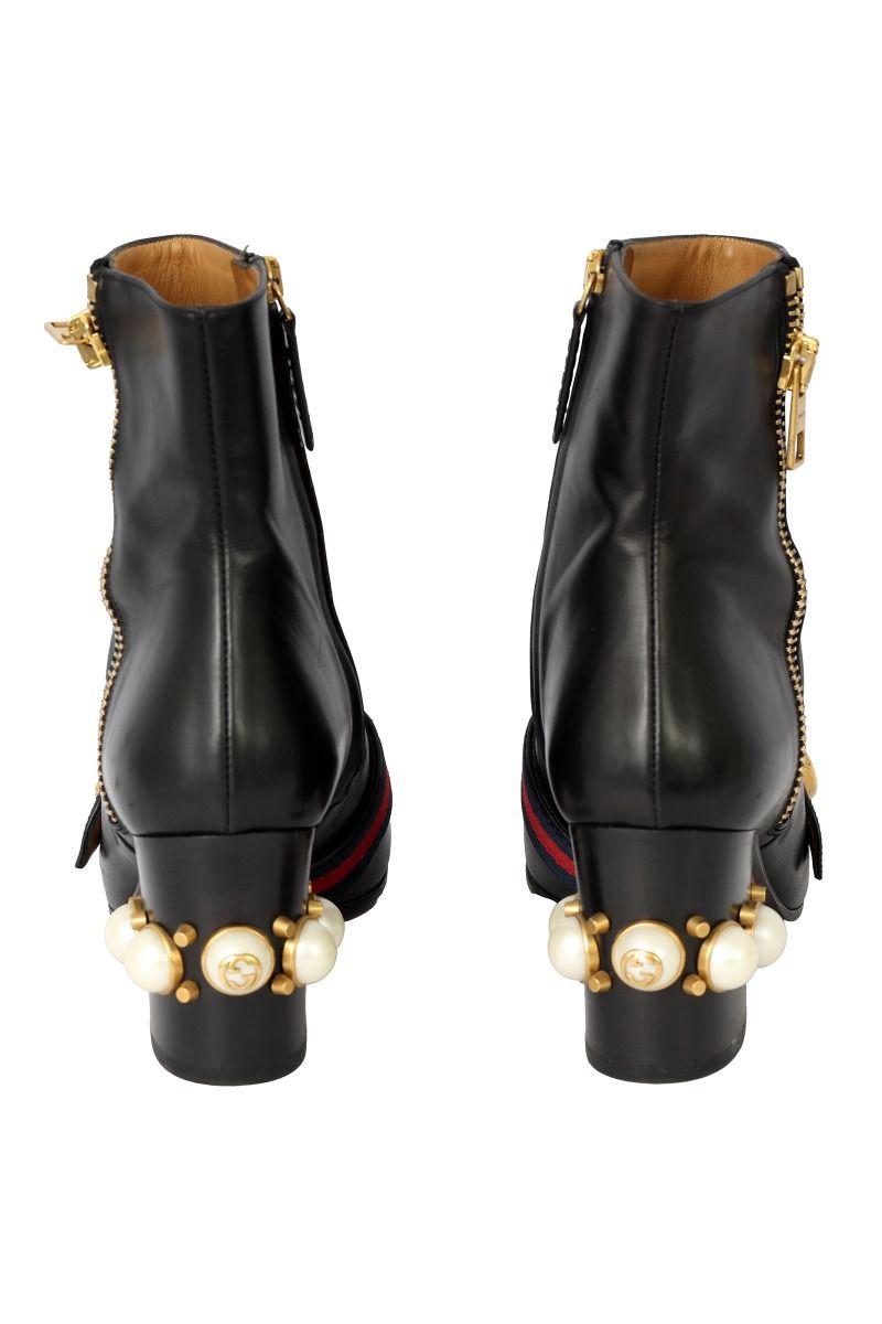 GUCCI SIZE- EU 37.5 PEYTON MARMONT LOGO PEARL EMBELISHED ANKLE BOOTS comesin this stunning Black color. It falls under our Pristine Condition Category.