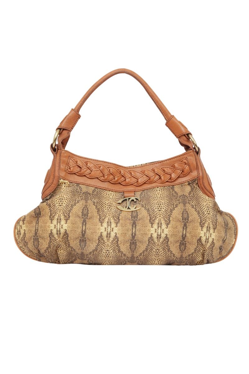 Just Cavalli Snakeskin Embossed Shoulder Bag comes in this Stunning Beige color .It falls under our pristine Condition Category. No visible wear and tear or fading can be seen