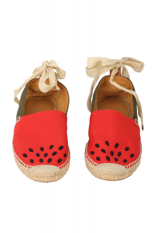 LOEWE EU 39 PAULA IBIZA EMBRIODERED CANVAS SANDALS comes in this stunning red color. It falls under our Pristine Condition Category.