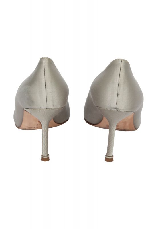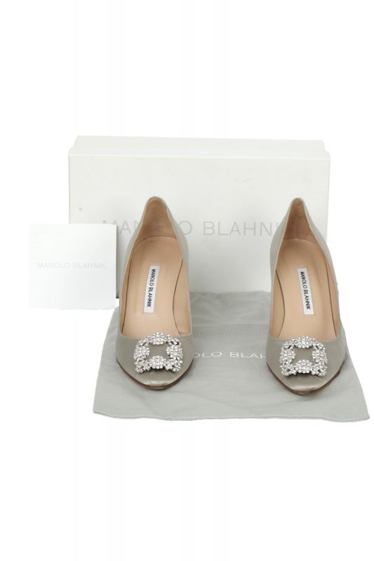 Manolo Blahnik 39 Hangisi Stain Grey Pumps comesin this stunning Grey color. It falls under our LIKE NEW Condition Category. No visible wear and tear or fading can be seen.