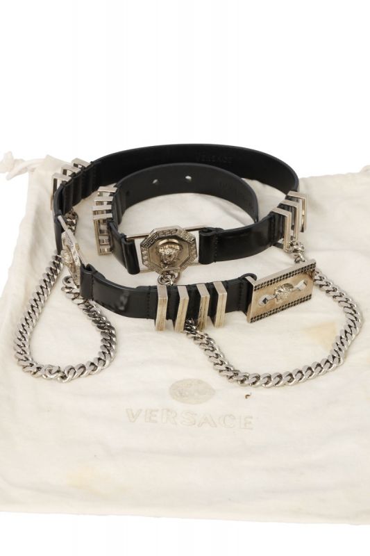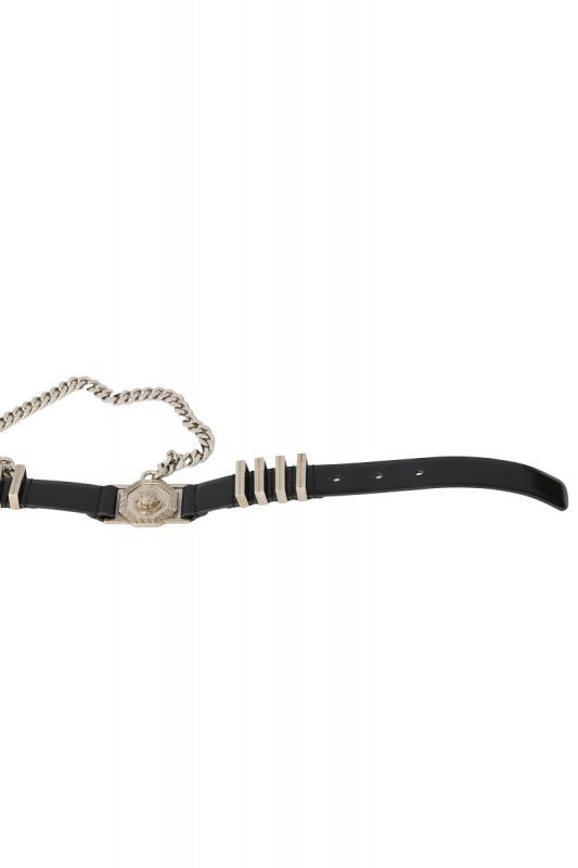 VERSACE SIZE- 75 CM/ 30 INCH BLACK MEDUSA LEATHER BOLTS CHAIN BELTComes in this stunning Black color. It falls under our Pristine condition Category.